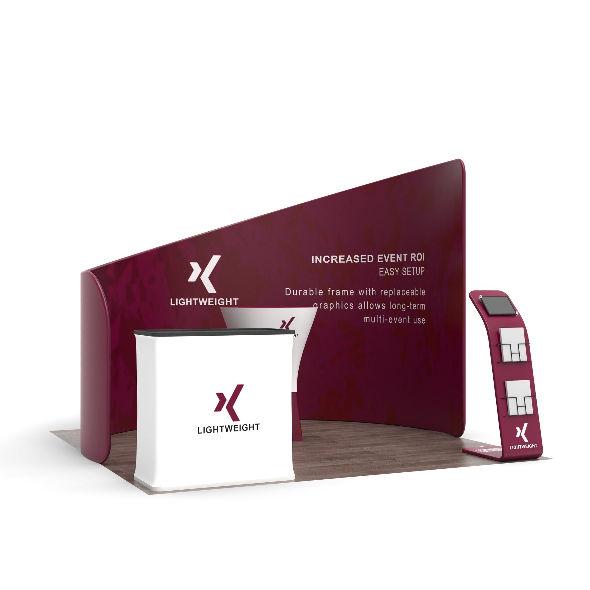 Crafted for modern exhibitors, this all-in-one booth package combines elegance, functionality, and engagement in a compact and inviting setup. At the heart of the display is a sleek 10ft curved privacy backwall, flanked by a round cocktail counter. Ideal for product displays and customer conversations, alongside a tension fabric iPad stand designed for vibrant digital content. Perfect for conversations and connections, this thoughtfully designed space feels both welcoming and professional—making every interaction count, without demanding too much room. The result is a professional yet welcoming environment that naturally draws visitors in and fosters meaningful interactions—all within a highly efficient footprint. Perfect for trade shows, corporate events, or pop-up activations, this package helps your brand stand out with ease and sophistication. Order today!