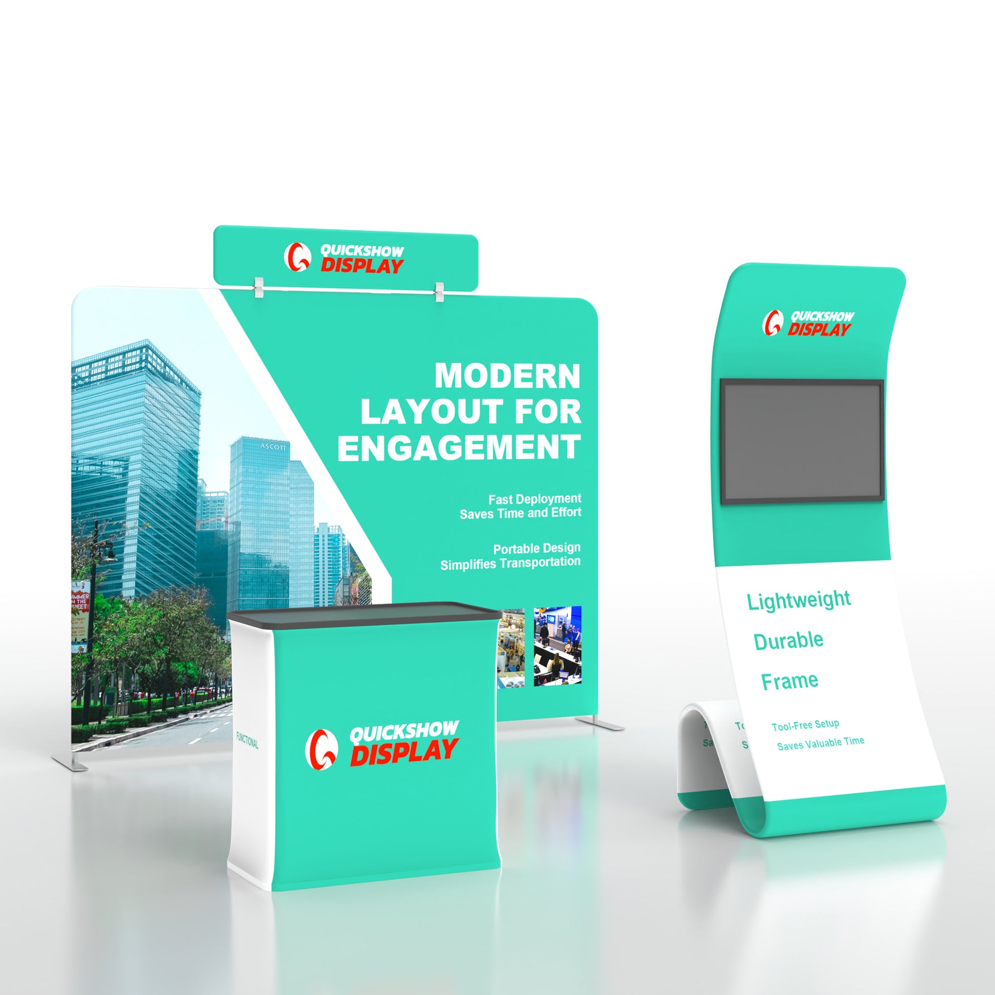 Showcase your products with this versatile 10ft trade show booth package—ideal for trade shows, retail expos, and industry conferences. This setup combines modern aesthetics with practical design to captivate buyers and tech-savvy audiences. The package includes a straight 10ft tension fabric backwall with a striking header for bold branding, plus a dynamic snakelike monitor fabric banner stand for immersive visual storytelling. Lightweight and tool-free, both units set up quickly—perfect for compact teams. Upgrade to a heavy-duty transport case for easy podium mobility. Command attention and elevate your exhibit—get your custom booth package today!