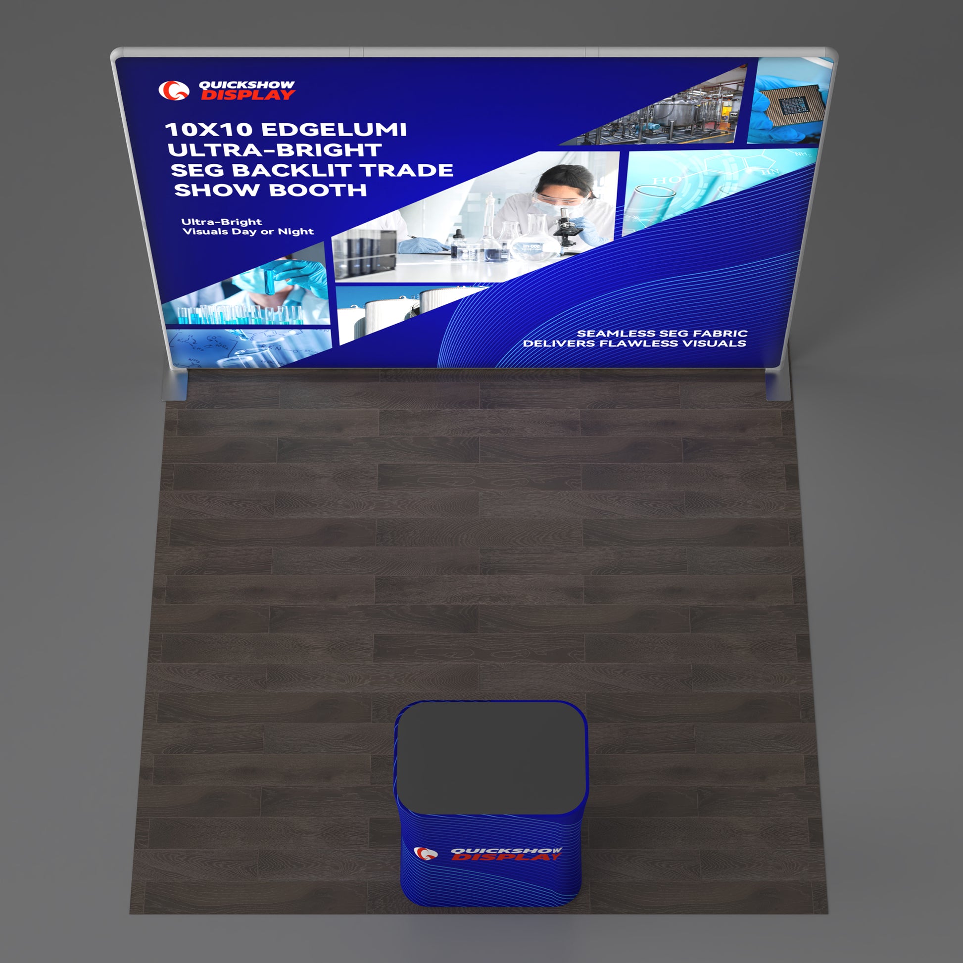 Elevate your presence and own the spotlight with our 10x10 Ultra-Bright SEG Backlit Trade Show Booth—a seamlessly integrated branding solution designed to make your exhibit impossible to ignore. The heart of the kit is our colossal 10ft seamless SEG backlit display, built with a robust 50-tube aluminum frame and ultra-bright, high-uniformity LEDs for breathtaking visual clarity. Paired perfectly with Square LED Presentation Podium, which offers a gracefully curved surface for notes or devices and illuminates your branded graphics with a sophisticated, professional glow. They create a cohesive and commanding brand experience that engages audiences from afar up close. Step into the light and make every event unforgettable. Order your complete Exhibition Booth Kit today!