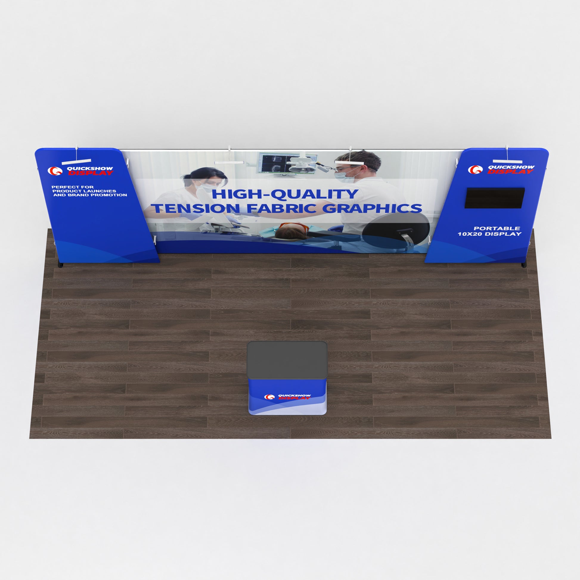 Make a powerful statement at any trade show or exhibition with our versatile and dynamic display package—designed to help every brand stand out with professional impact and effortless operation. This comprehensive setup includes a 20ft collapsible aluminum snap-tube frame with a high-definition zippered graphic for vibrant visuals and tool-free assembly, plus two customizable arc displays that create immersive, dimensional branding. An integrated TV mount allows you to easily showcase videos, demos, or interactive content. Optional upgrades include energy-efficient LED lighting to illuminate your space and a durable wheeled carry case for maximum portability. Ideal for product launches, lead generation, or brand storytelling—whether at tech expos, retail fairs, automotive shows, or corporate events—this display system helps you captivate your audience and create memorable experiences.