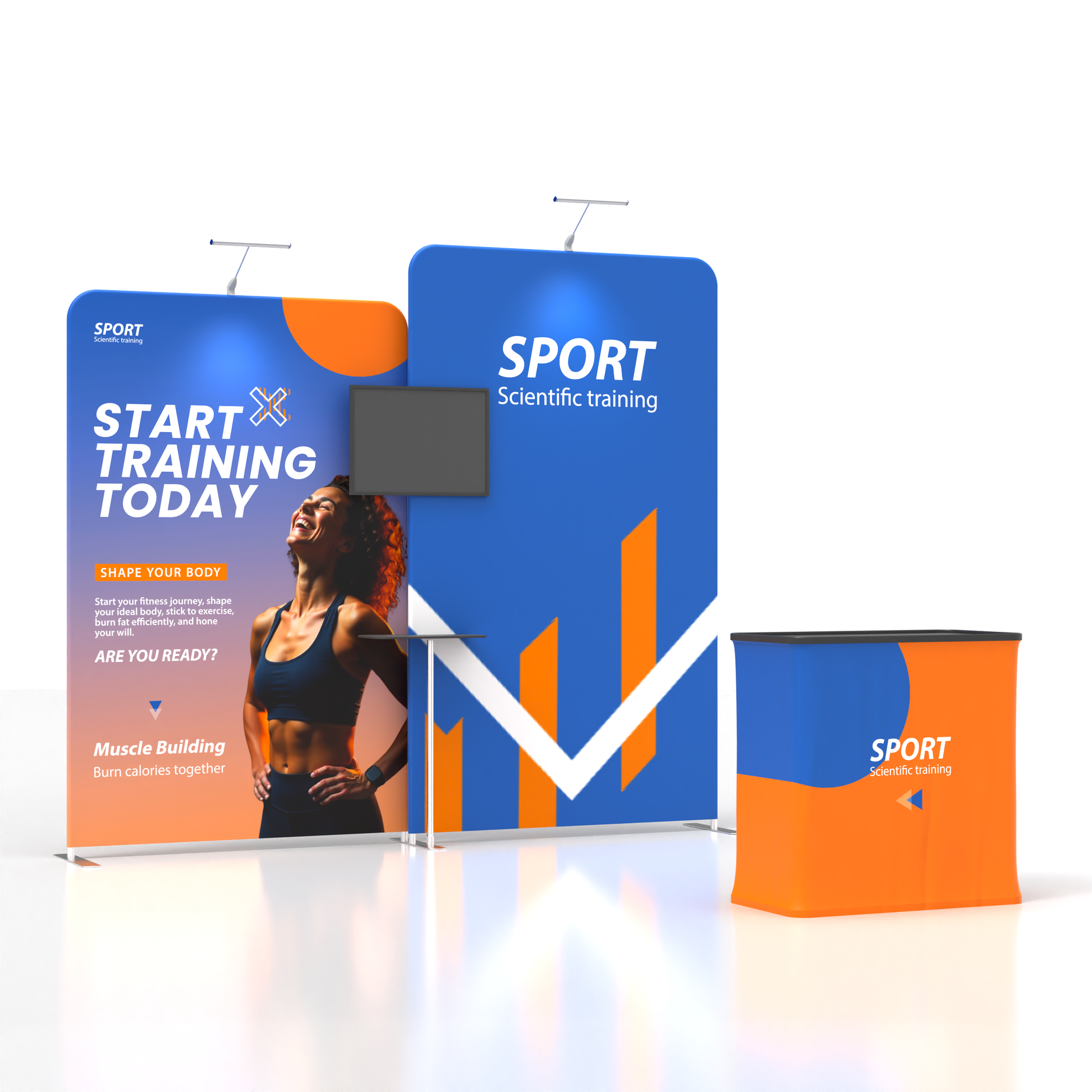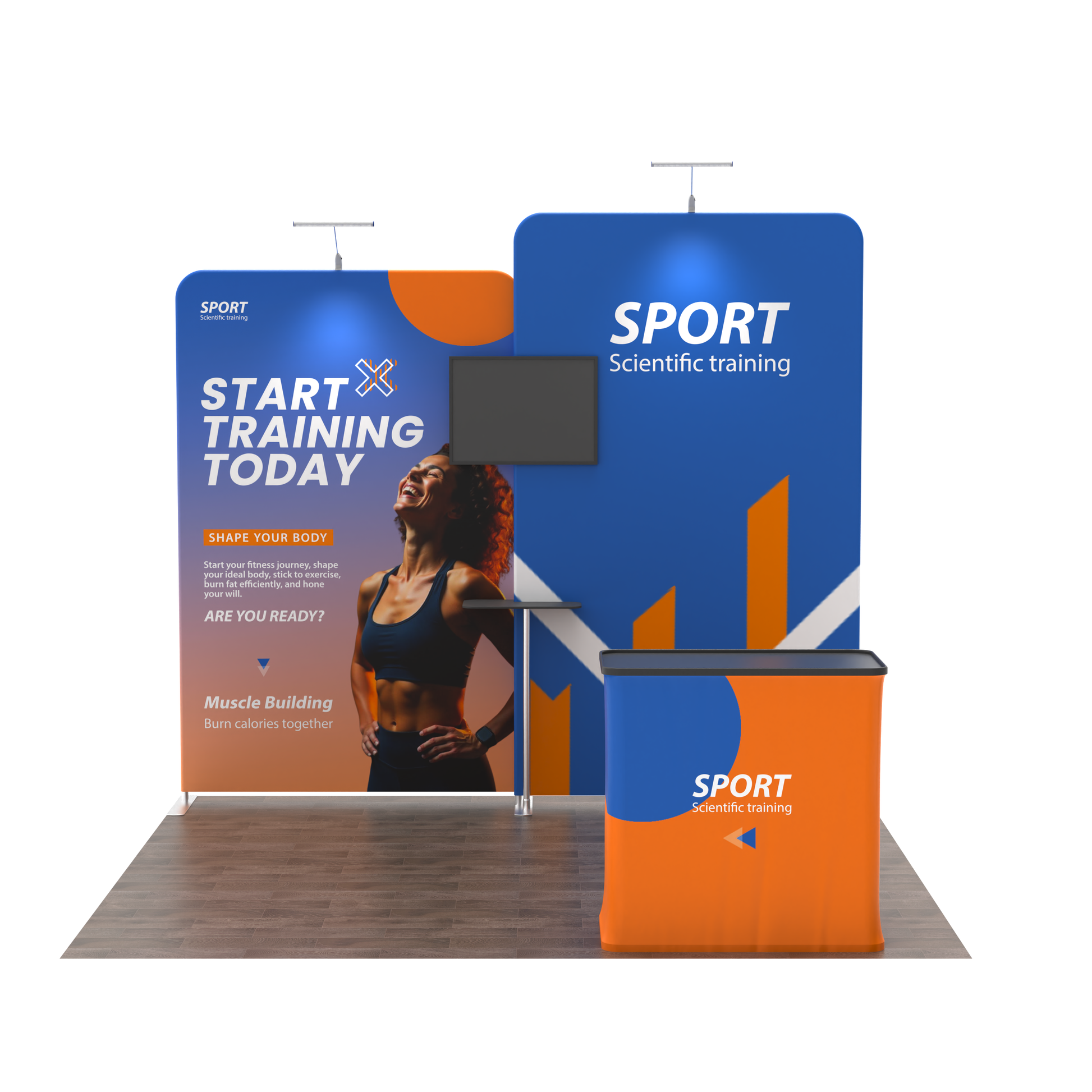 This kit includes two high-impact TenseFlex fabric background panels, ensuring vibrant, wrinkle-resistant graphics , along with an integrated TV/monitor mount and a convenient bracket for product demos or promotional materials.