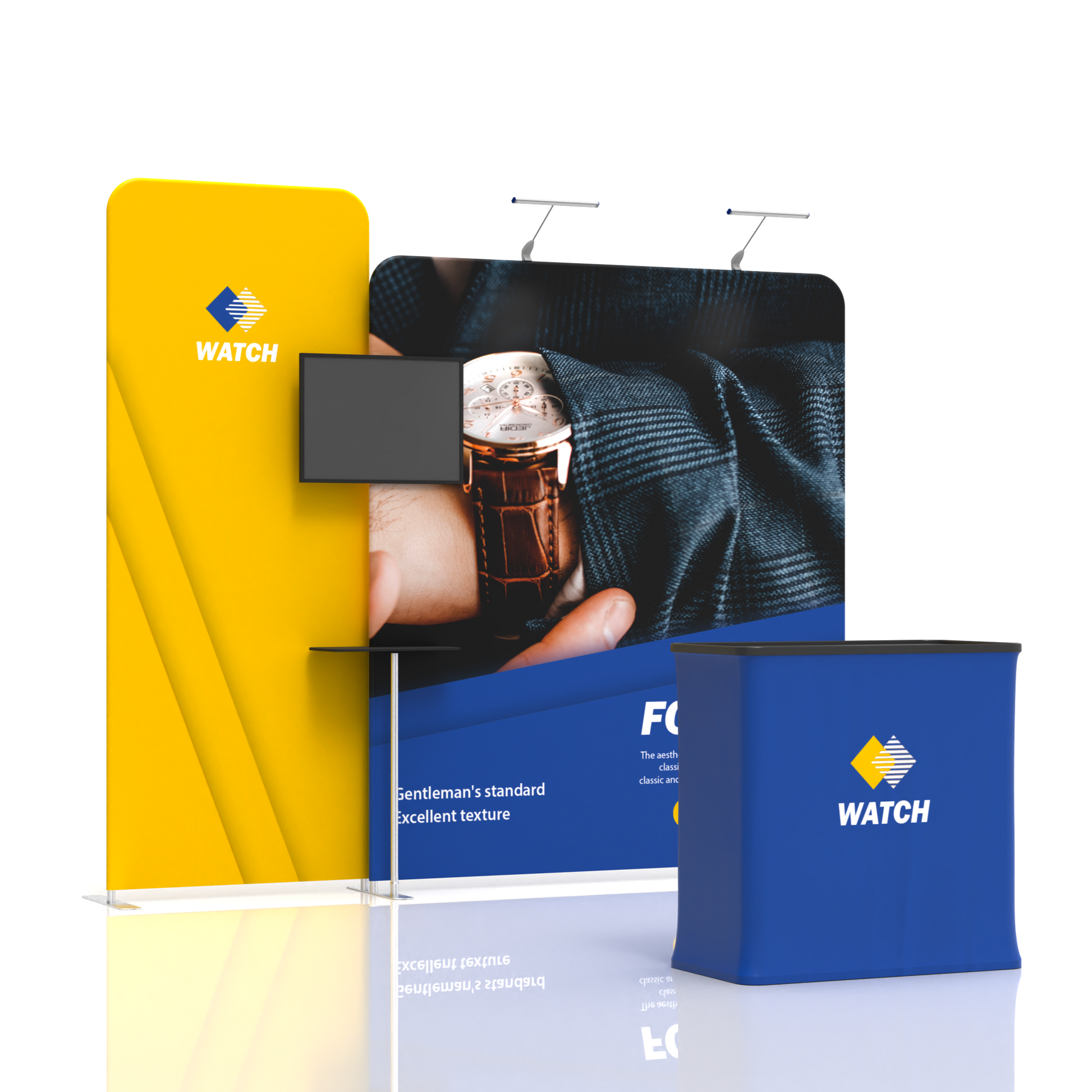 For brands that prioritize clean, professional visuals, the TenseFlex Media Display Kit C delivers a 10x10 booth solution with two straight-top tension fabric backdrops (79'' & 39'' wide) and a modular podium featuring integrated shelving and TV mount. Designed for clarity and functionality, this kit combines high-resolution graphics with multimedia capabilities, allowing you to showcase product videos, marketing collateral, and physical items in a streamlined, cohesive space. Lightweight, easy to assemble, and fully customizable, it’s ideal for corporate exhibitors, tech brands, and anyone who values simplicity without compromising on impact.